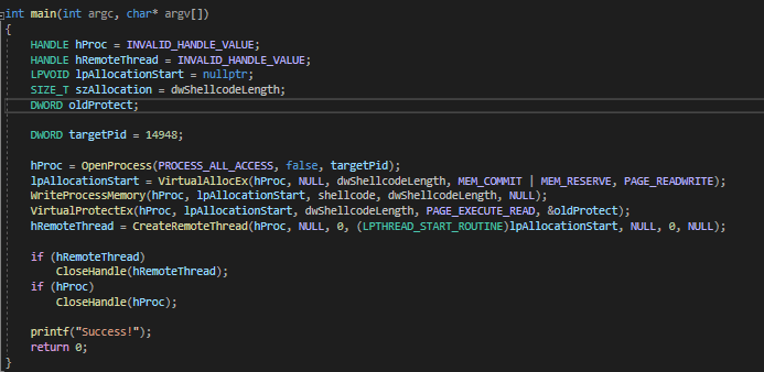 Finally, we are able to execute the assembly! This is very easy to do if you want to execute a specific exported function from a dll. However, we want to be able to execute common .Net offensive testing tools like Rubeus, Seatbelt, etc. which are commonly used as exes so we need to do a bit extra. (Credit to https://github.com/b4rtik/metasploit-execute-assembly/blob/master/HostingCLR_inject/HostingCLR/HostingCLR.cpp for some of this).